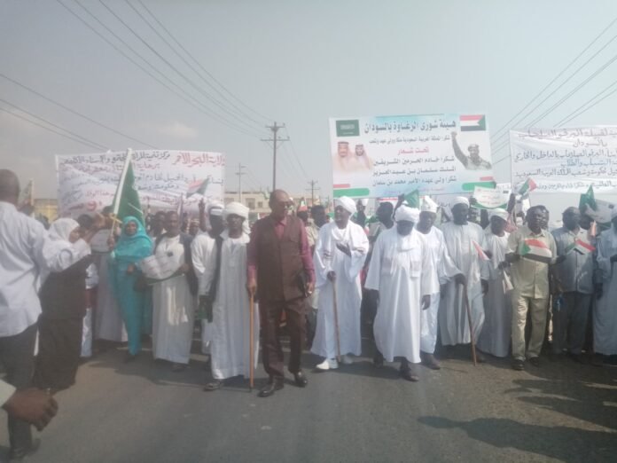 سيرت منظمة رابطة الشعوب صباح اليوم موكب رد الجميل لشعب وحكومة المملكة العربية السعودية بمشاركة أعضائها و رئيسها الفريق عمر نمر، وتجمع الموكب بالقرب من معمل استاك وثم تحرك نحو السفارة السعودية، ورفع المشاركون لافتات تؤكد عمق العلاقات بين البلدين، بجانب لافتات داعمة للقوات المسلحة فضلاً عن ملصقات مندده باحداث الفاشر، وشهد الموكب مشاركة فرق موسيقية وشعبية ومكونات إجتماعية، وردد المشاركون “شكراً السعودية شكراً الملك سلمان” و”جيش واحد شعب واحد”.